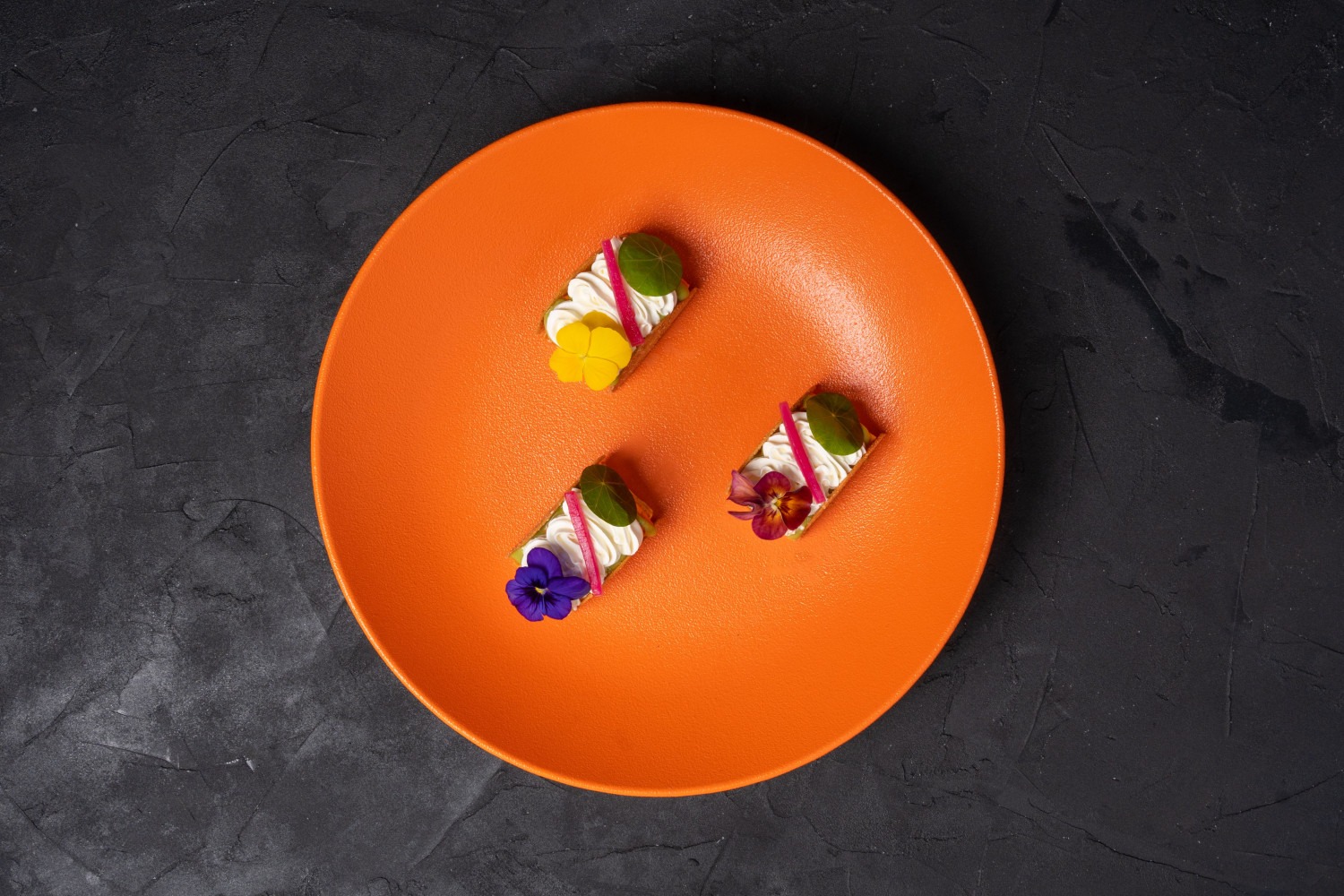 Paneer tikka د.إ95 Vegetarian Khakra mille-feuille, sambal, vellow & green chili Category: Grill & Tandoor